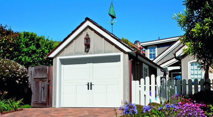 Distinctly defined door designs built with durable composite overlay trim and insulated steel-backed sections that provide energy efficiency, noise reduction and beauty to your home.